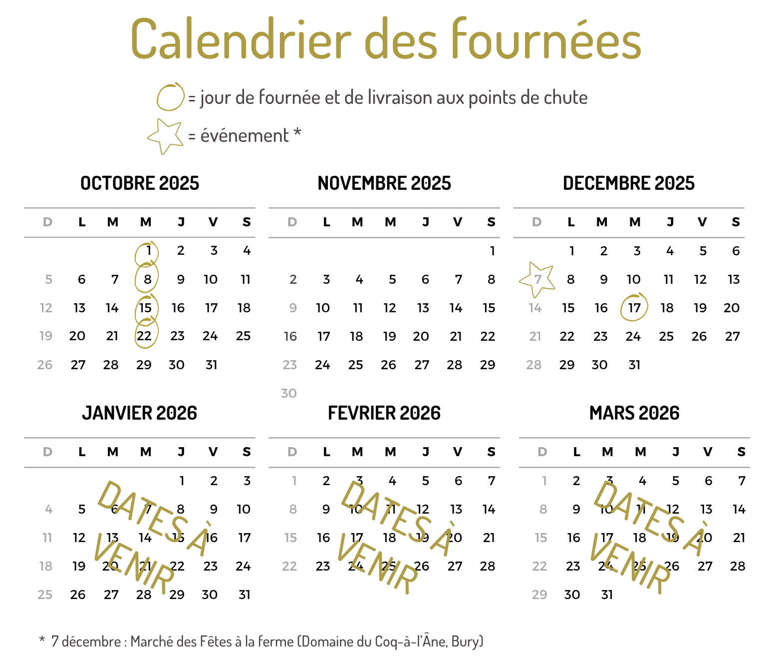 Période de commande : du jeudi midi au lundi 19h pour une livraison le MERCREDI suivant, au point de chute de votre choix.